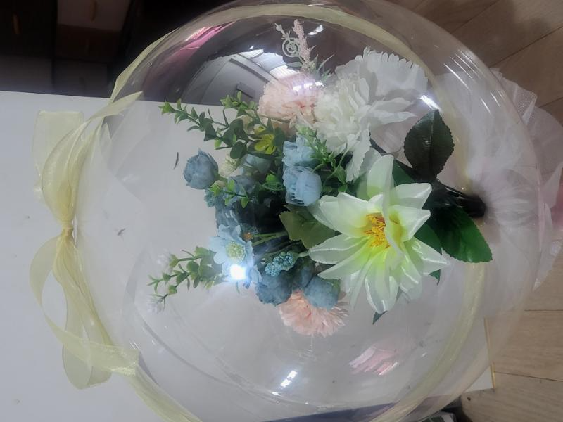 - 透明バルーンに花を閉じ込めたクリアタイプ